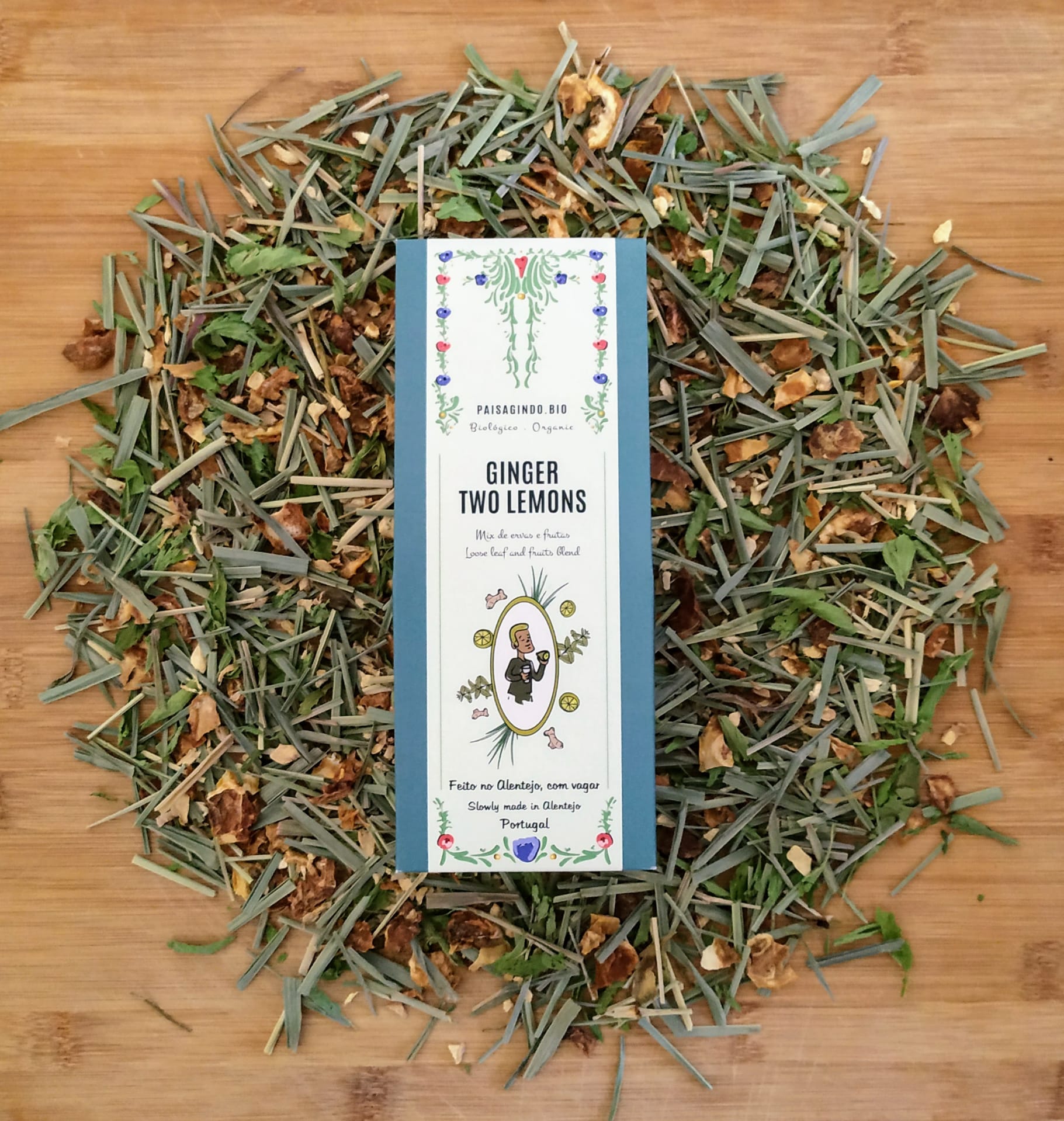 Ingredientes: Casca e rodelas de limão desidratado, gengibre, erva-príncipe e stevia