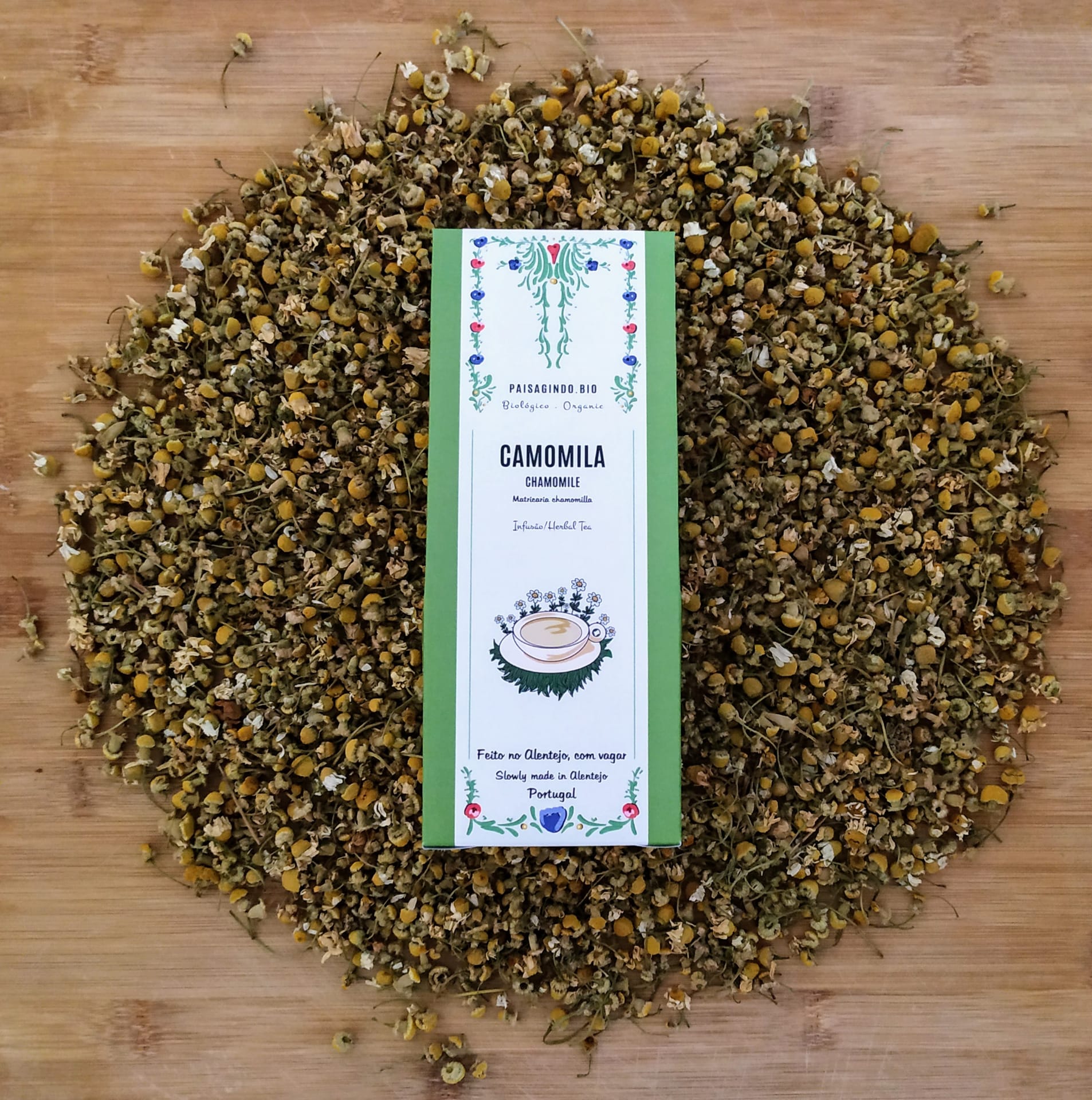 0 Camomila 3,20 € Desconto de %. IVA incluído. Flores de camomila de produção biológica (Matricaria Chamomila) Peso por embalagem: 35 gr Ler mais Quantidade Comprar Contactar Partilhar