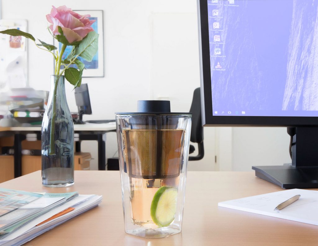Cool Touch: O "Hot Glass & Hat" é a solução para todos os que querem manter os dedos frios enquanto mantém a bebida muito mais tempo quente - A parede dupla isola tanto as bebidas quentes como as frias com ainda um segundo efeito.