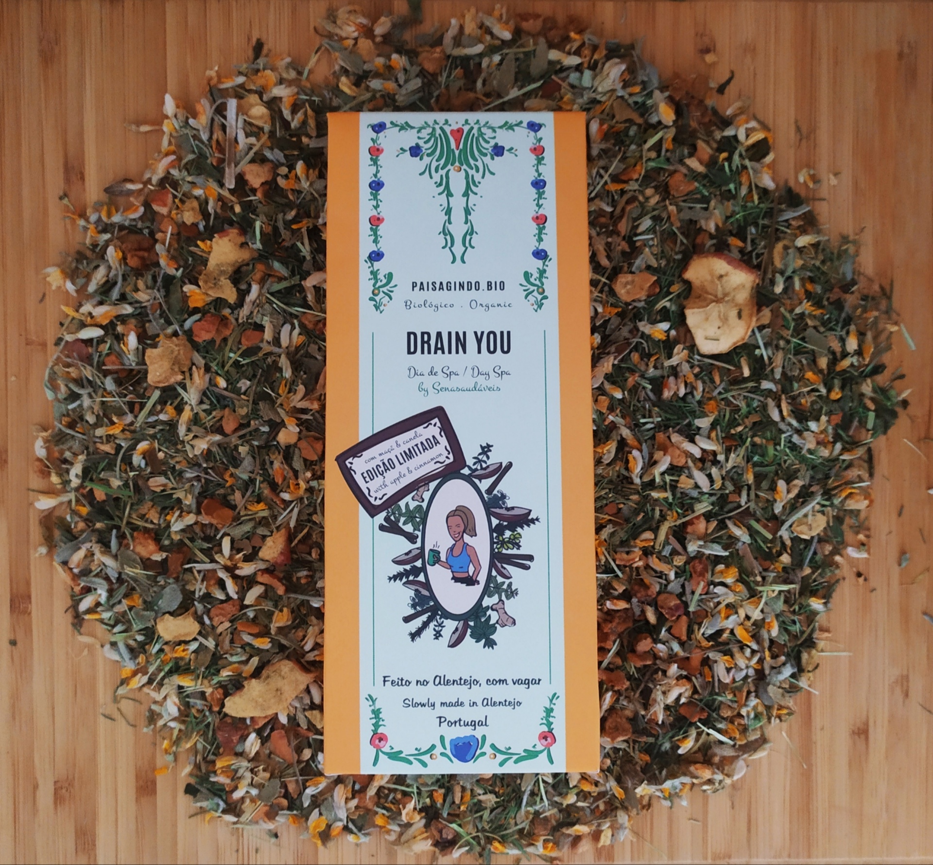 À receita original da tisana Drain You, desenvolvida pela Senasaudáveis, juntámos verdadeiros pedaços de canela e de maçã desidratada, produzida nos nossos pomares biológicos aqui no Alentejo e também da região Oeste de Portugal.