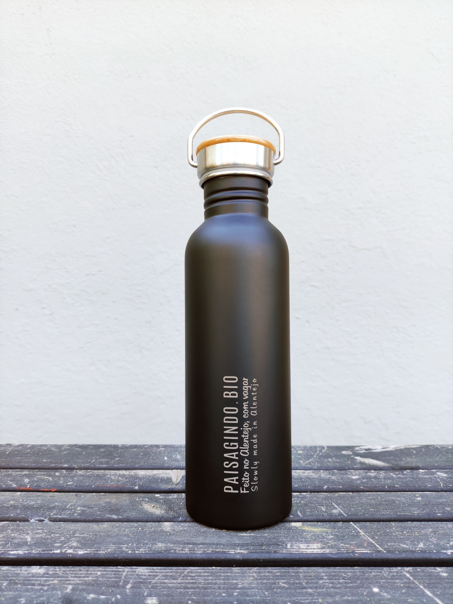 Garrafa em inox com tampa em bambu (75 cl)