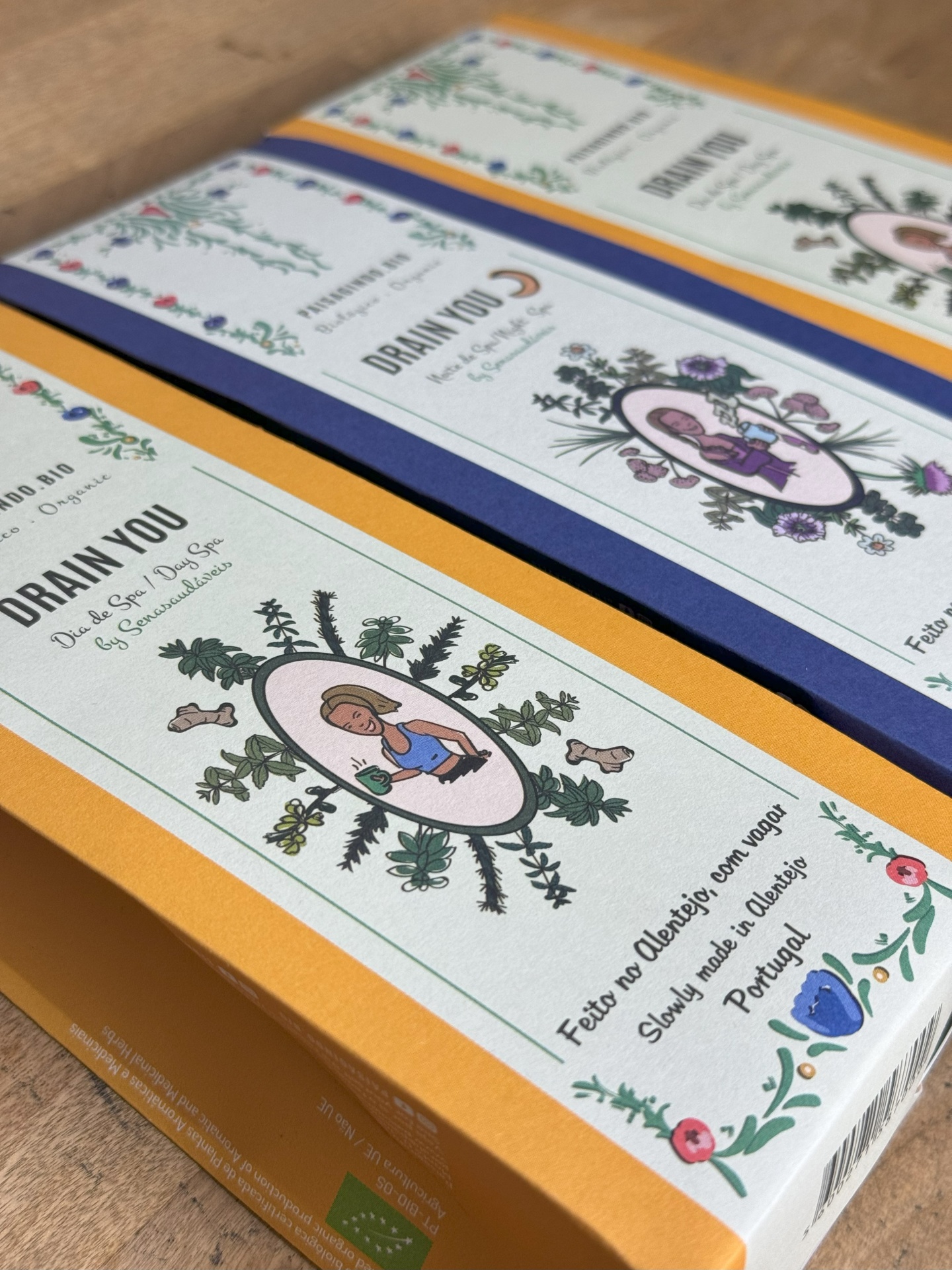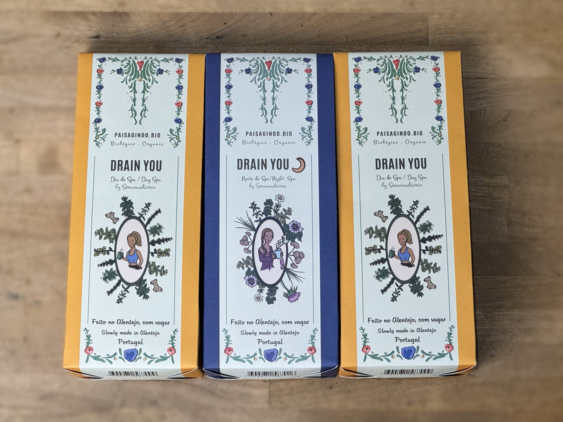 Pack de 3 embalagens composto por duas tisanas Drain You (dia) e uma tisana Drain You 🌙 (noite), by "Senasaudáveis".