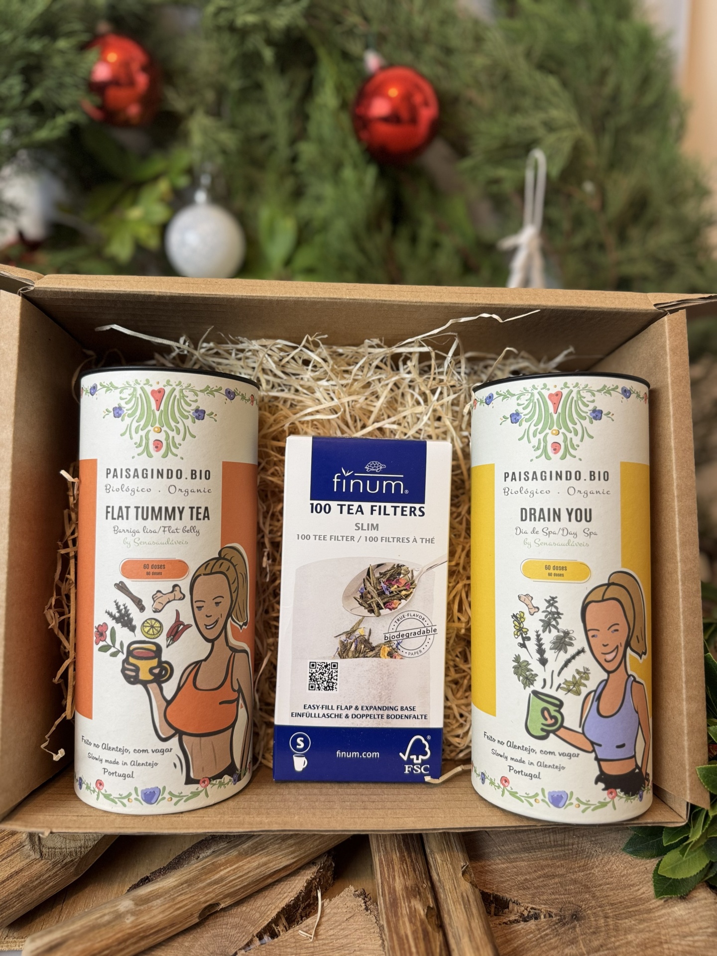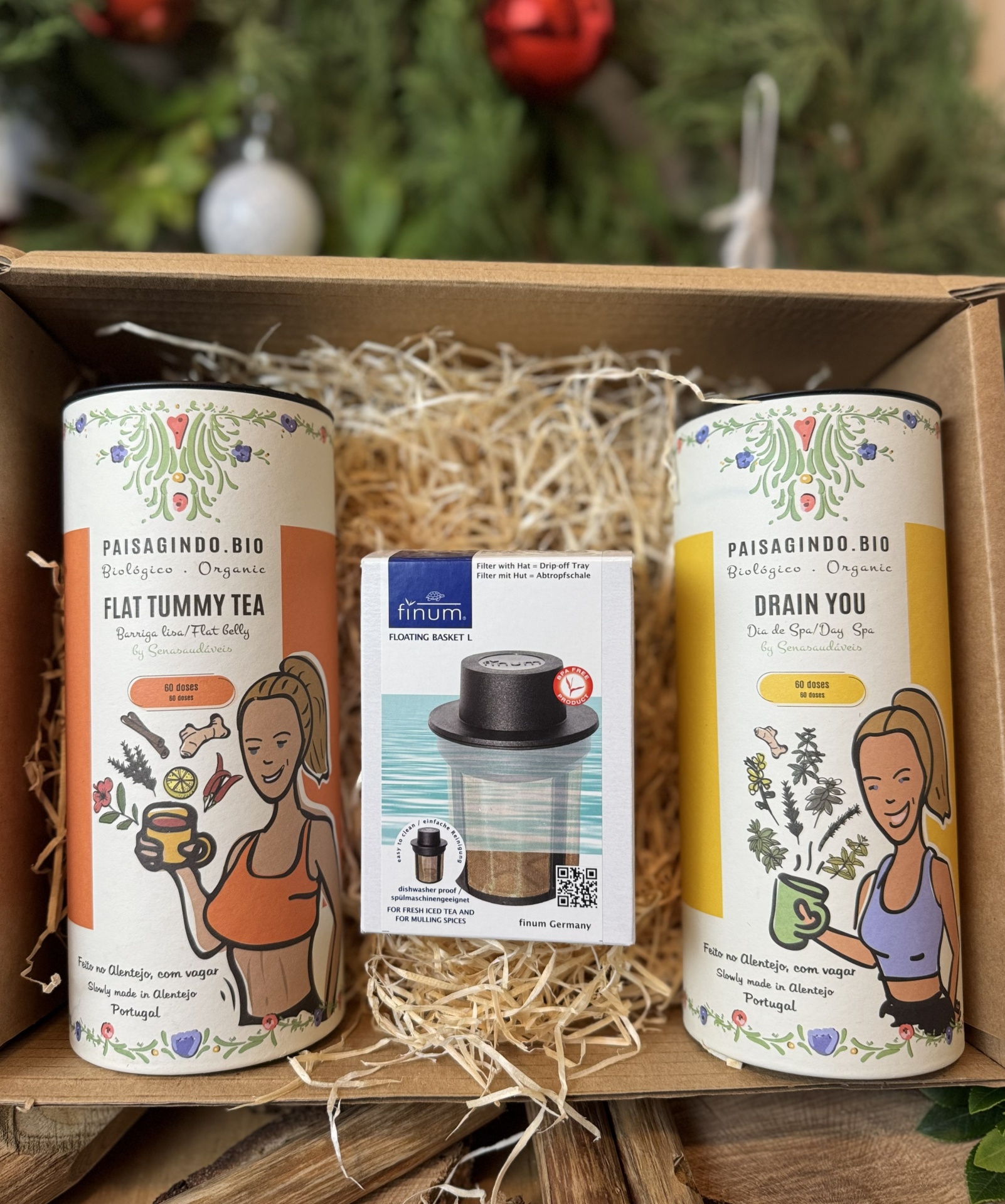 Composto por duas tisanas XL (120 doses cada), criadas em parceria com a Senasaudaveis, unindo plantas aromáticas e medicinais de produção biológica a um estilo de vida mais consciente, natural e cheio de bem-estar.