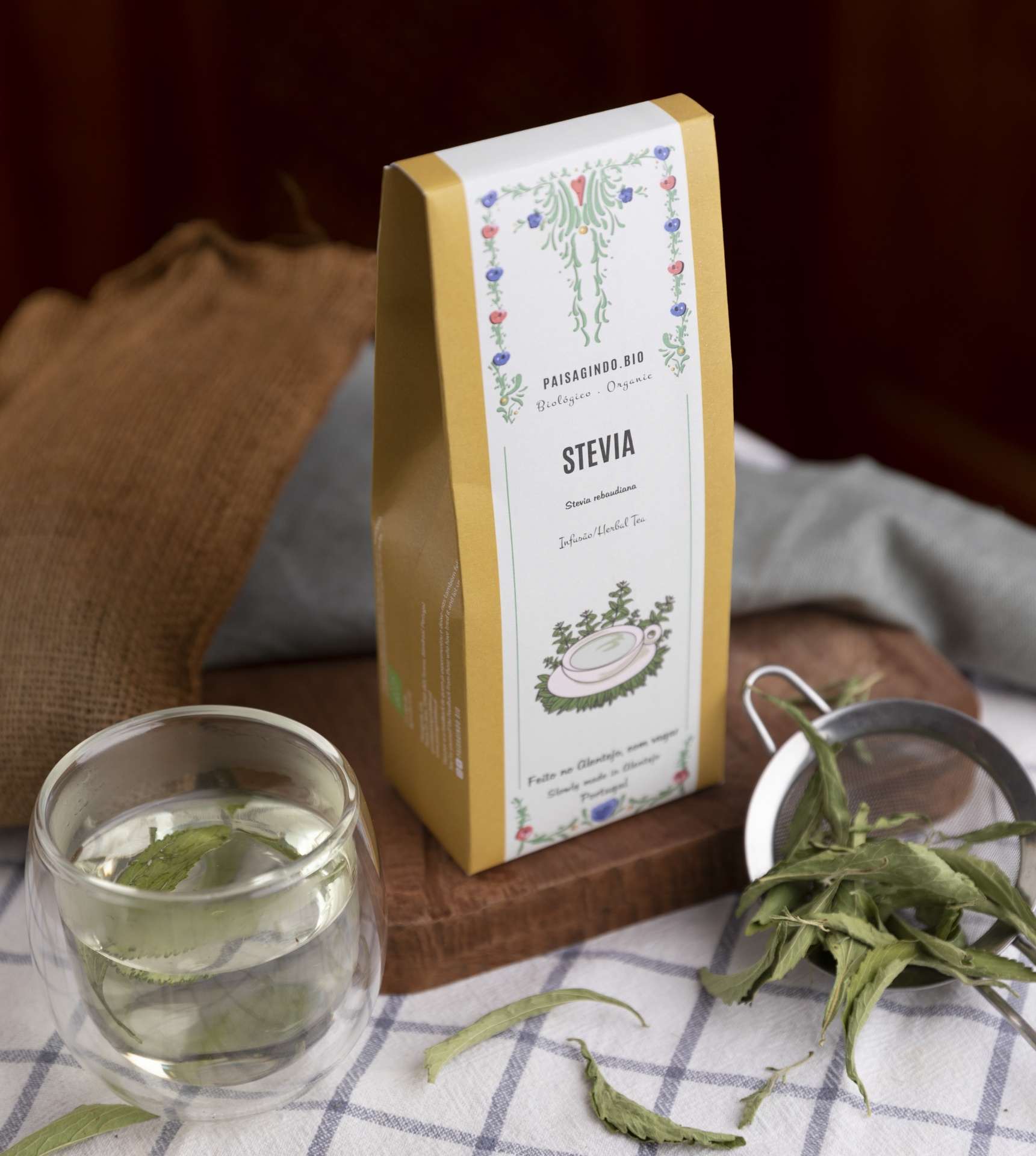 Aqui na paisagindo.bio usamos exclusivamente as folhas e caules herbáceos da planta, garantindo pureza e autenticidade. A estévia é perfeita para adoçar naturalmente as tuas tisanas, chás, sobremesas ou até para equilibrar pratos salgados e para agridoces. Nada de extratos químicos ou adoçantes artificiais: apenas a folha pura, colhida e seca cuidadosamente em modo de produção biológico.