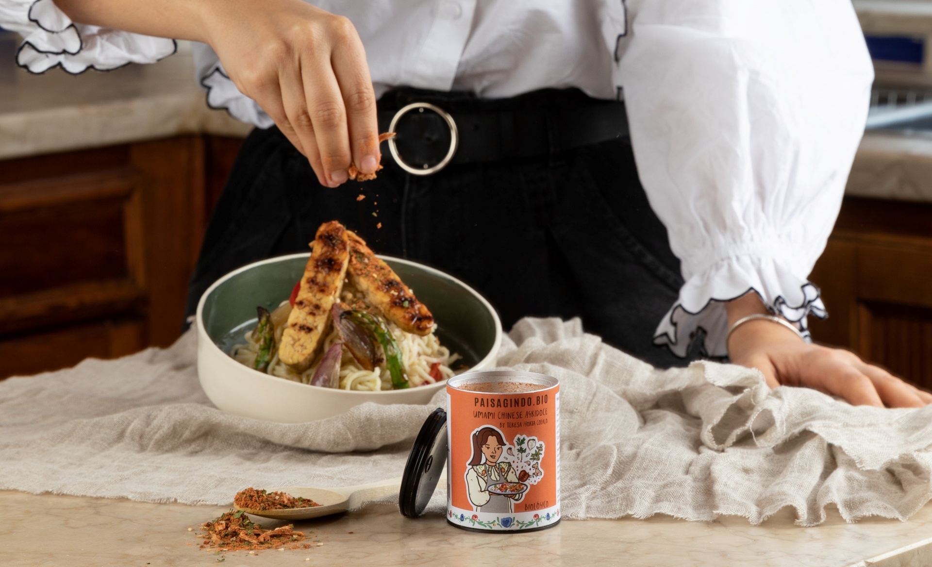 Esta mistura de plantas aromáticas e condimentares ajudará a preparar a sua proteína com um sabor delicioso, de uma forma rápida e prática. Cozinhar sem proteína animal não tem que ser aborrecido e por isso oferecemos-lhe um pequeno "atalho" para dar um boost de sabor aos seus pratos, sem pensar muito em temperos.